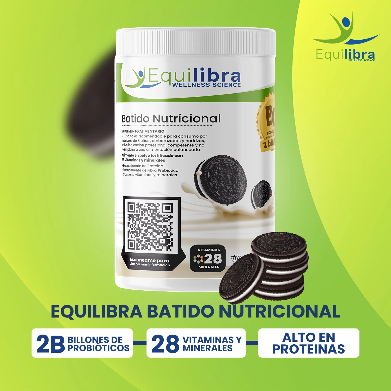 Equilibra Batido Cookies & Cream : Nutrición Completa + 2 Billones de Probióticos para tu Bienestar Digestivo